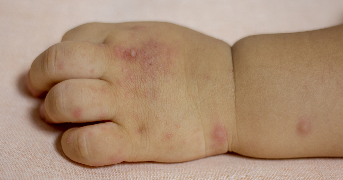 A distanza di uno o due giorni dalla febbre, si sviluppano le vescicole caratteristiche localizzate soprattutto sul dorso delle mani, talloni e lati delle dita. Meno frequentemente, le lesioni possono interessare il palmo delle mani, la pianta dei piedi, l’inguine o i glutei. Talvolta è possibile riscontrare anche un aumento nel volume dei linfonodi in risposta all’infezione.
