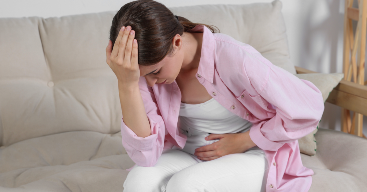 • Dolori pelvici, con una sensazione di pressione o pesantezza nella parte bassa dell’addome e gonfiore, spesso collegata al ciclo mestruale (> ne abbiamo parlato in ​questo articolo).
